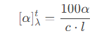 Specific rotation is defined as the optical rotation per unit concentration and per unit pathlength, and is often used to characterize the optical rotation characteristics of pure substances. It is calculated as follows: