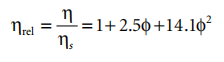 In the formula, n is the viscosity of the solvent, and φ is the volume fraction of the suspension. For spherical particles with no interparticle interactions, Equation 4.6 is valid. Including long-range interactions (such as volume exclusion) changes only φ2.