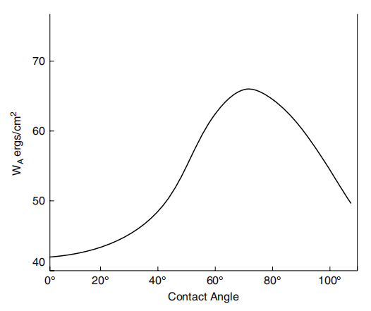 Figure 5.3 Work of adhesion of a liquid on a surface with y = 21.5 ergs/cm.
