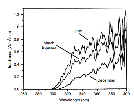 Figure 1 Seasonal variation curve of sunlight ultraviolet rays