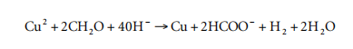 The Cannizzaro reaction consumes formaldehyde and a total of 3 to 6 moles of CH2O are used to deposit 1 mole of copper. During copper plating, a large amount of alkali is used, including the Cannizzaro reaction. The consumption of OH– can be determined according to the following equation (moles of species):