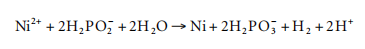 Electroless nickel plating using hypophosphite as a reducing agent is a popular process. 12,13 The autocatalytic reduction of nickel ions by hypophosphite occurs in both acidic and basic solutions. In stable solutions with high coating quality, deposition rates can be as high as 20 to 25 μm/h. However, this requires relatively high temperatures, around 90°C. Because hydrogen ions are formed in the reduction reaction,