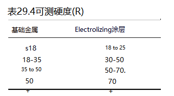 Electrolytic is one of the hardest chrome surfaces available, measuring 70 to 72 Rc when applied. "As applied" means the measurable hardness of an electroplated coating, as measured on the base metal to which it is applied. The base metal plays an important role in determining the wear resistance of the electrolytic surface. Generally, electrolysis increases the measurable hardness by 10 to 15 points, as shown in Table 29.4.