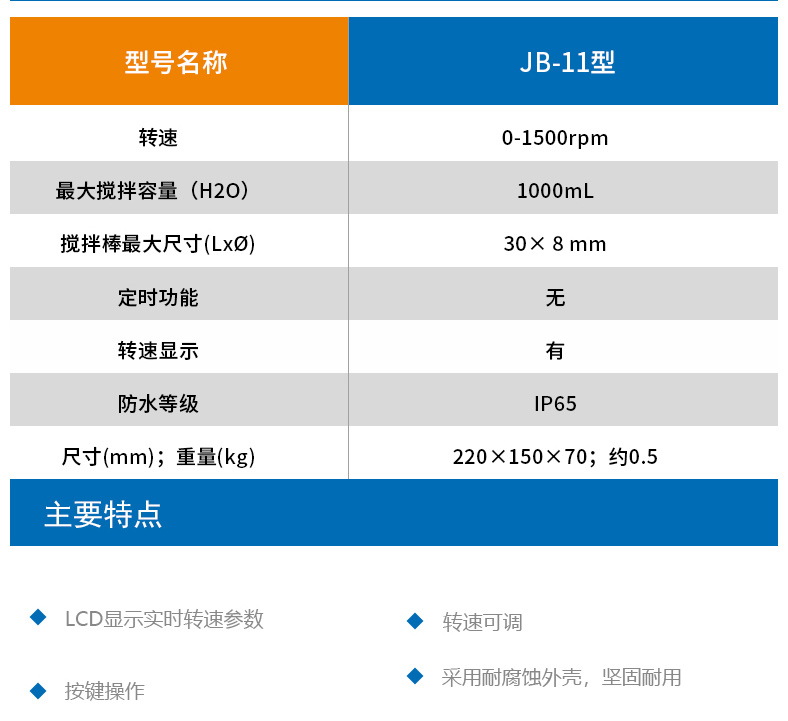 JB-11The stirrer is suitable for chemical laboratories, scientific research institutions, small and medium-sized enterprises, colleges and universities, biology, chemistry and other fields for solution stirring.