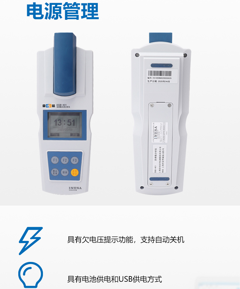 f)DGB-401 multi-parameter Water Quality AnalyzerIt has the functions of automatic shutdown (in min) and power-off protection;
