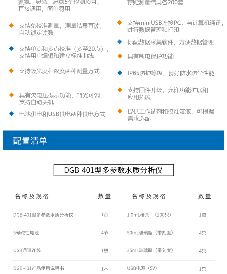 1、DGB-401 multi-parameter Water Quality AnalyzerThere are 4 wavelengths to choose from, and through software upgrades, you can expand multiple environmental protection testing items;