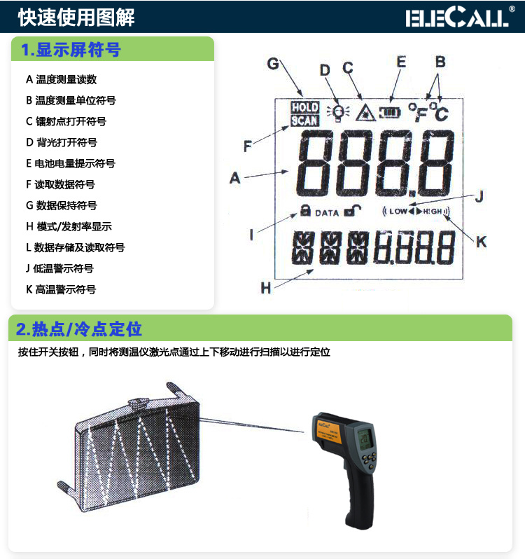 ELECALL ELECALL infrared temperature measuring gun EM800 is suitable for air conditioning heating pipes, concrete and other temperature measurement, the temperature reaches 800 ℃, EM800 infrared temperature measuring gun is a high-precision industrial grade thermometer.