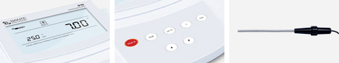 • 1 to 3 point key calibration, automatic recognition of USA or NIST standard buffer.