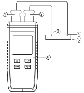 3) Measure the temperature difference: T1-T2