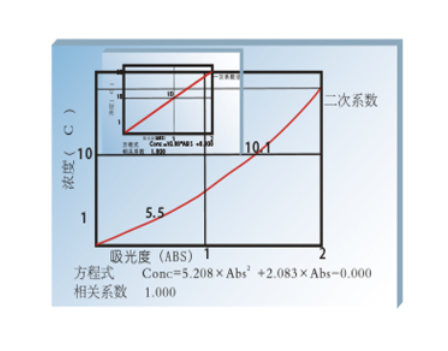 2. Equation example: Conc=10.000×Abs2+0.100×Abs-0.000 correlation coefficient 1.000
