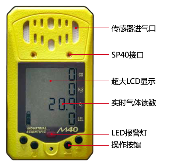 INDUSTRIAL SCIENTIFIC M40 diffusion type combustible/hydrocarbon Gas Detector, range 0~100% LEL, resolution 1%, sound, light, vibration alarm, using catalytic combustion Sensors, with international UL, ATEX, CSA, GOSA certification, CHINA type certification/explosion-proof certification.
