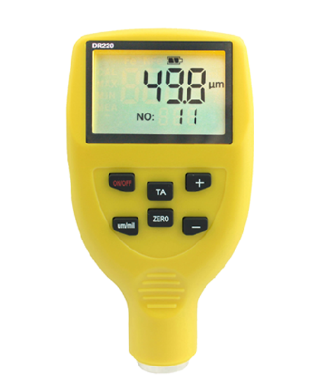 The DONGRU DR220 integrated Coating Thickness Gauge is an upgraded version of the Thickness Gauge with a range of 0-2000μm. The DR220 integrated Coating Thickness Gauge adopts a larger display screen and is widely used in automotive paints, automotive evaluation, metal processing, chemical and other fields.