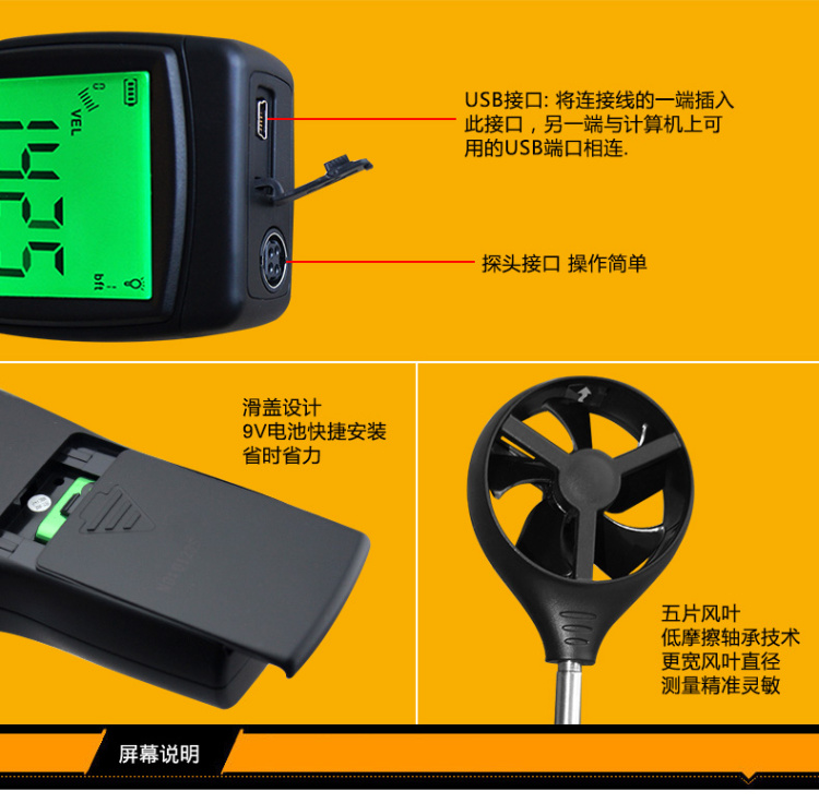 Suitable for power, steel, petrochemical and other industries as well as special occasions such as sailing, rowing, field shooting, etc. Measurement range covers wind speed, air volume and air temperature, and has high-precision, multiple unit selection, Data storage and low power prompt functions.