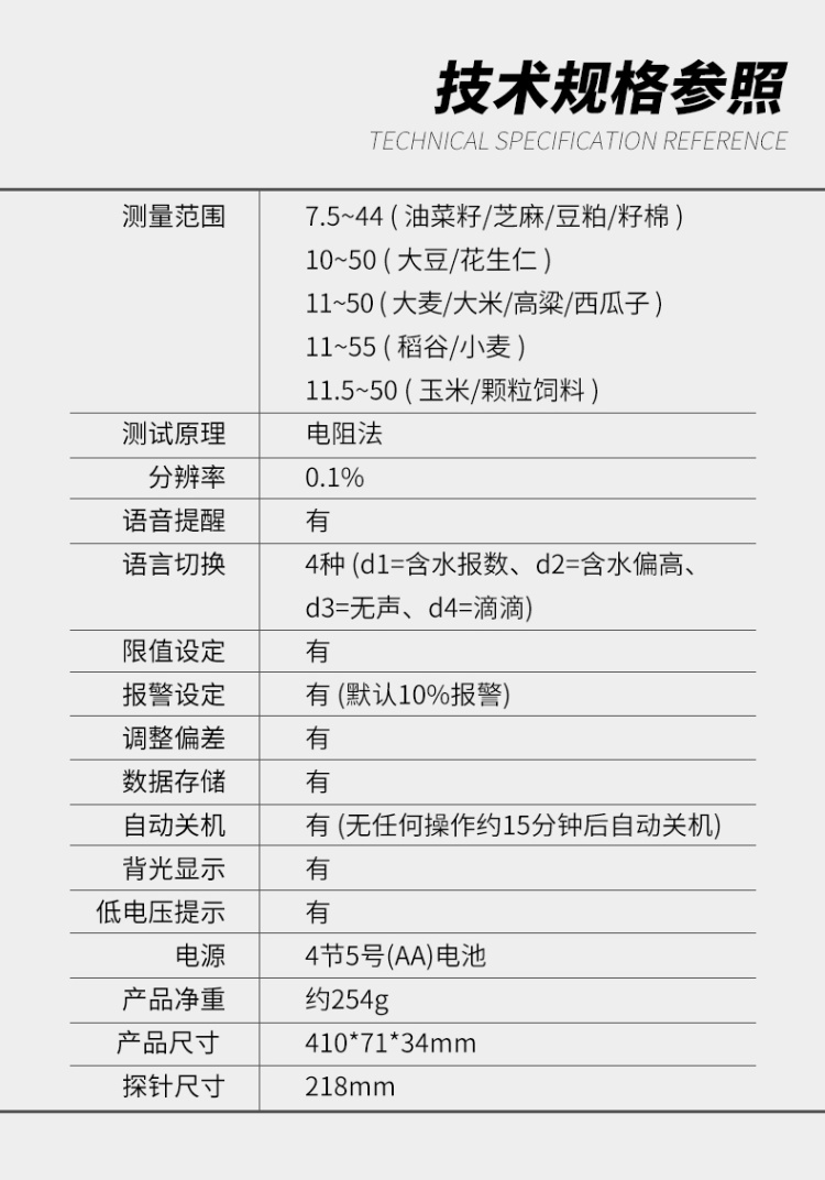 TASI TA8185 Grain moisture analyzerSpecifications