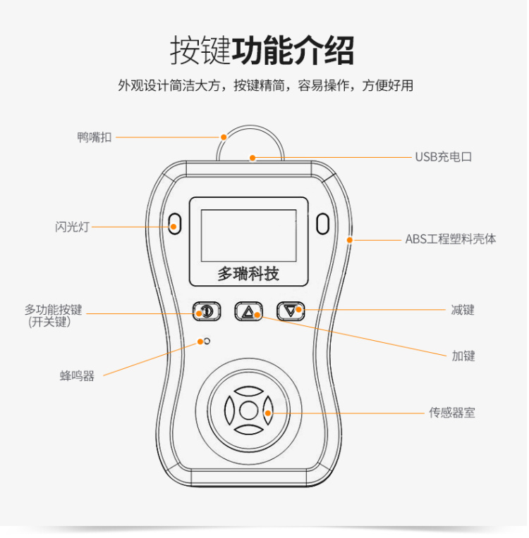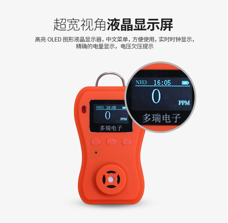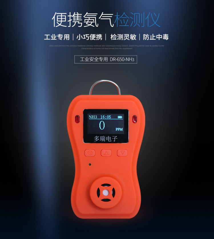 DUORUI DR-650-NH3 Gas Detector adopts electrochemistry principle Sensors, Sampling method is diffusion type, DR-650-NH3 Gas Detector has 360 ° diffusion detection, sound and light vibration alarm function.