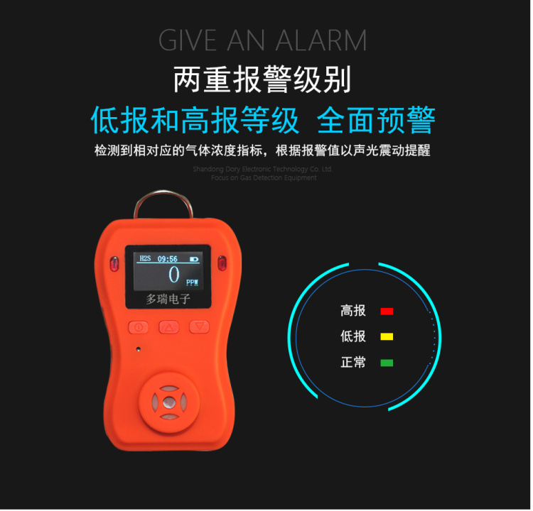 • Built-in sound, light and vibration alarm, high-low alarm value can be adjusted;