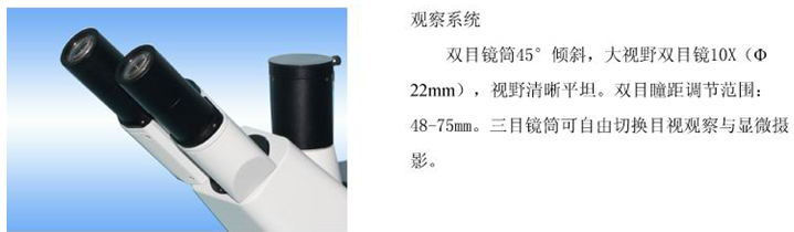 | Eyepiece tube | 45 ° tilt, binocular pupil distance adjustment range: 48~ 75mm, eye point height from the table to 400mm. |