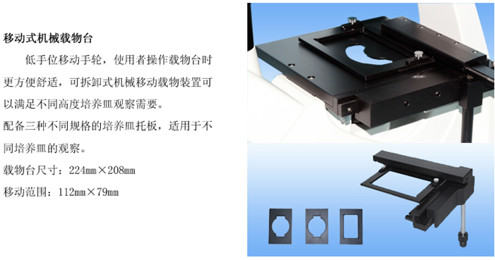 | stage | Moving range (horizontal X vertical): 112mmX79mm, removable moving ruler |