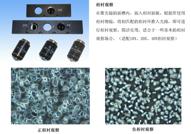 | phase contrast system | Phase contrast: pull plate type phase contrast condenser, adjustable center of phase contrast ring |