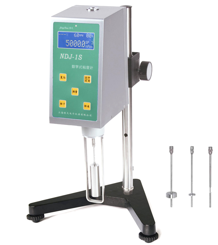 The LCD of Shanghai Jingtian NDJ-1S digital display rotary viscometer can display viscosity, rotation speed, percentage torque, rotor number and the maximum viscosity value that can be measured by the selected rotor at the current rotation speed, etc. It is a digital display Rotational Viscometer with a measuring range of 20~100000 mPa·s.