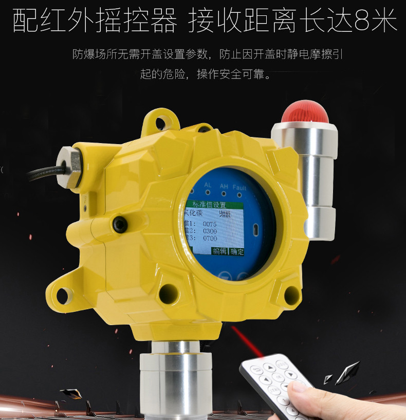 Fixed type, measuring combustible gas (NO2), range 0-20PPM, multi-parameter LCD digital display, full software calibrate, semiconductor nano-process, infrared remote control remote operation, up to 8 meters.