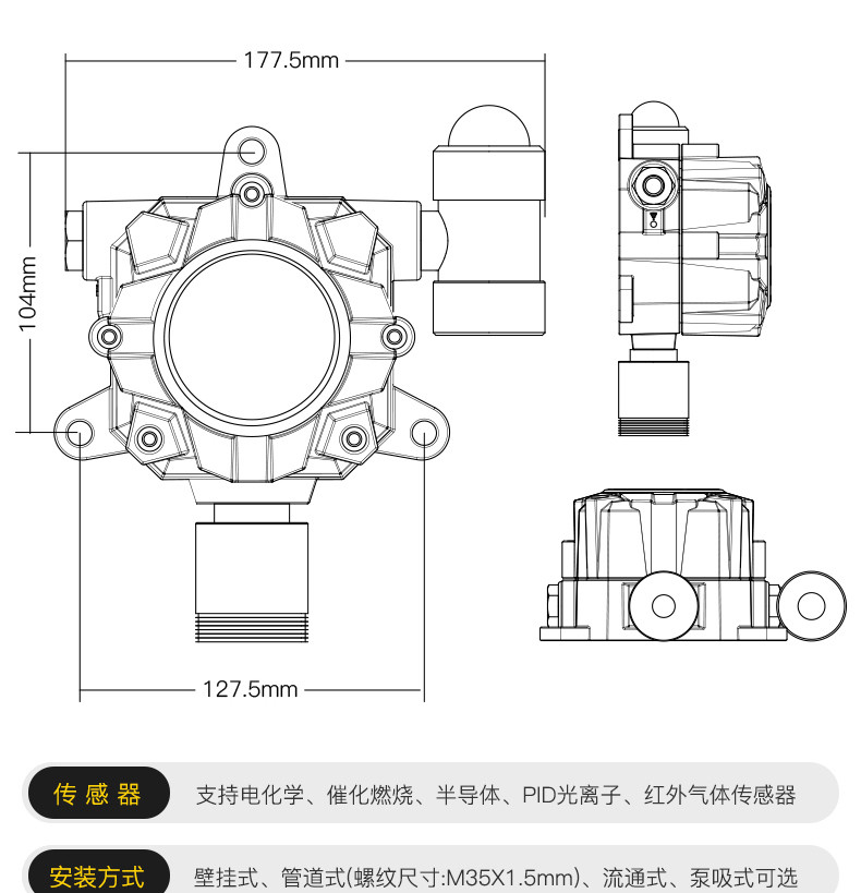 | Sensors | Electrochemistry, Catalytic combustion, Semiconductor, PID Light Ion, Infrared Gas Sensors |