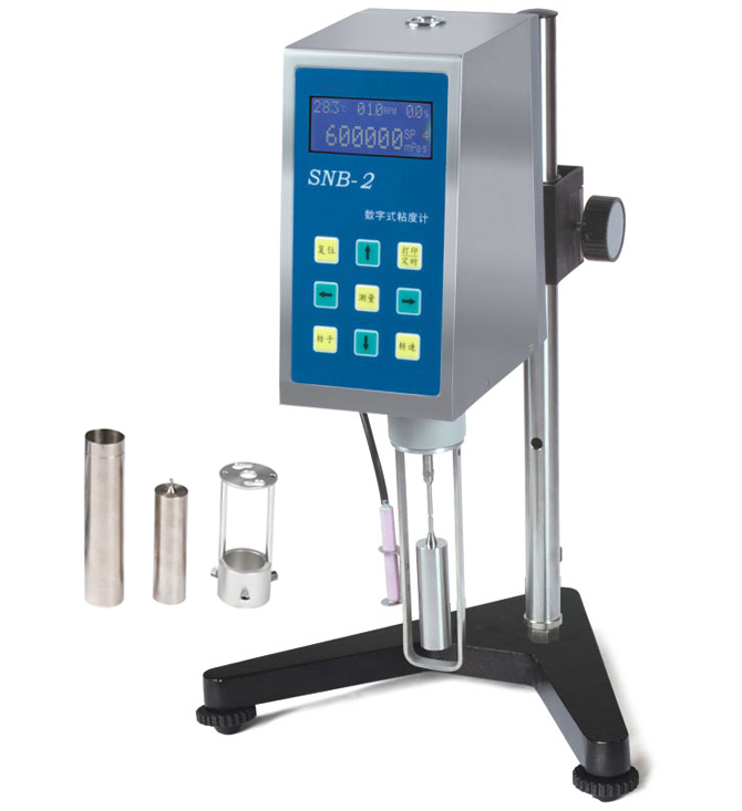 The LCD screen of the SNB-2 digital display rotary viscometer can display viscosity, shear rate, shear stress, rotational speed, temperature, percentmeter torque, rotor number and the maximum viscosity value that can be measured at the current speed of the selected rotor. It is a digital rotary viscometer with a range of 12~6,000,000 mPa · seconds.