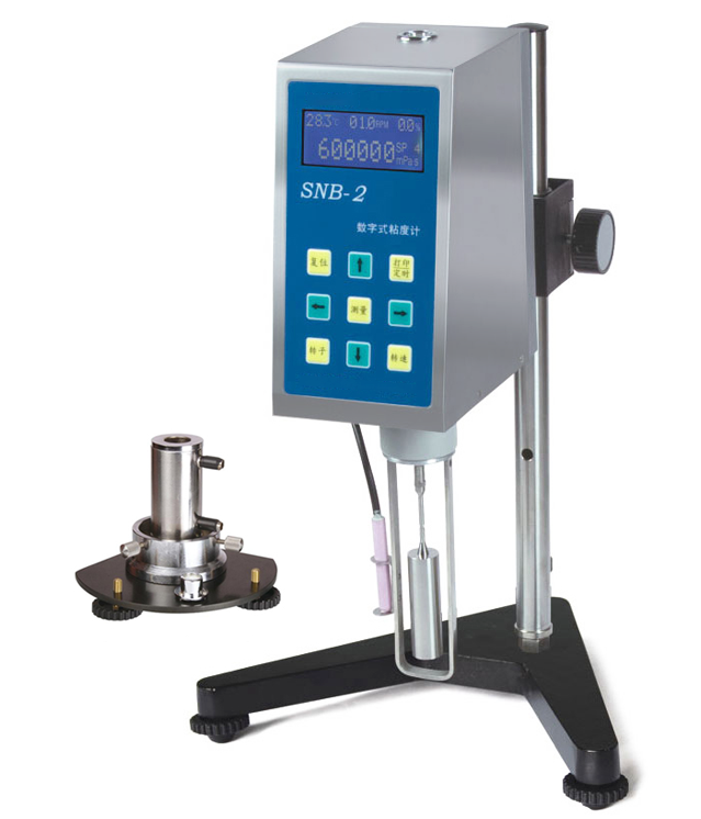 The LCD screen of the SNB-2 digital display rotary viscometer can display viscosity, shear rate, shear stress, rotational speed, temperature, percentmeter torque, rotor number and the maximum viscosity value that can be measured at the current speed of the selected rotor. It is a digital rotary viscometer with a range of 12~6,000,000 mPa · seconds.